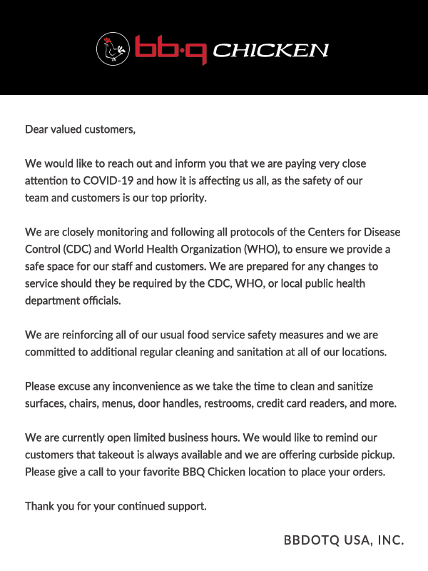 At BB.Q, we care about you. We not only use the freshest ingredients but also prepare our chicken with 100% extra virgin oil creating a unique fresh flavor and a clean after taste.